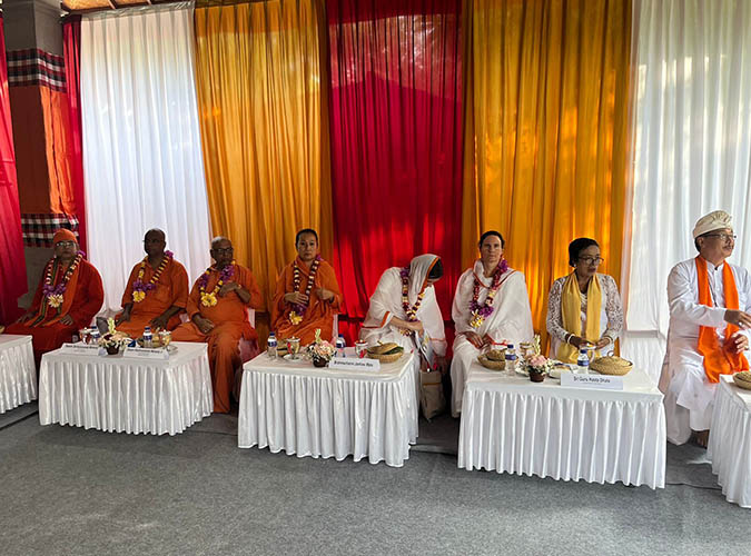Pravrajika Shraddha Prana Mata has been a devotee of Sri Bhagavan ( International Vedanta Society ) since 2015. During that time her character has transformed from a serious, worldly person to a genteel, caring and smiling devotee. She is living a blissful life under Bhagavan’s Grace. With her large heart, she shares the love and teaching of practical Vedanta to all around her and is a role model to many. She had been searching for the truth for a long time and when she met Bhagavan, she knew that she had found her path; her determination and discipline enabled her to melt all the outer layers and the Truth was revealed.